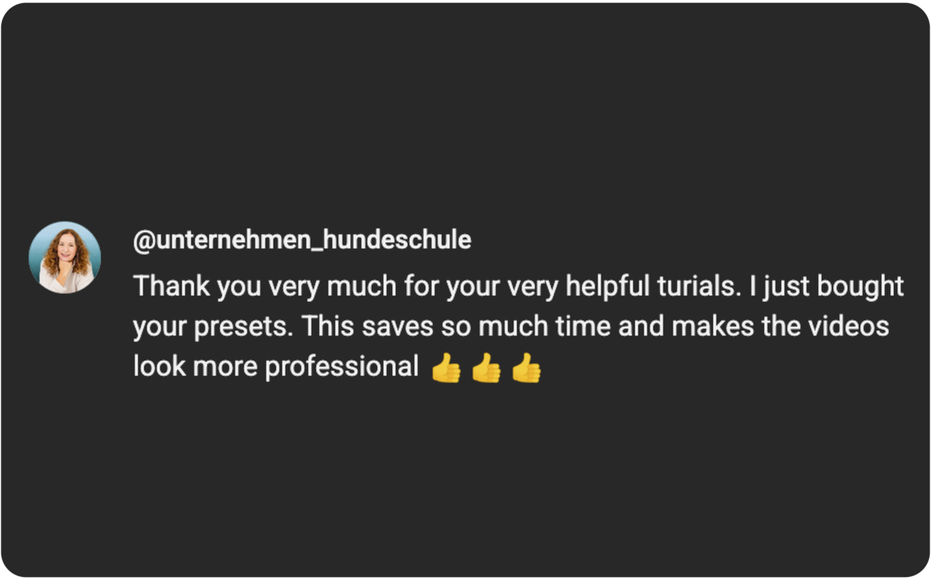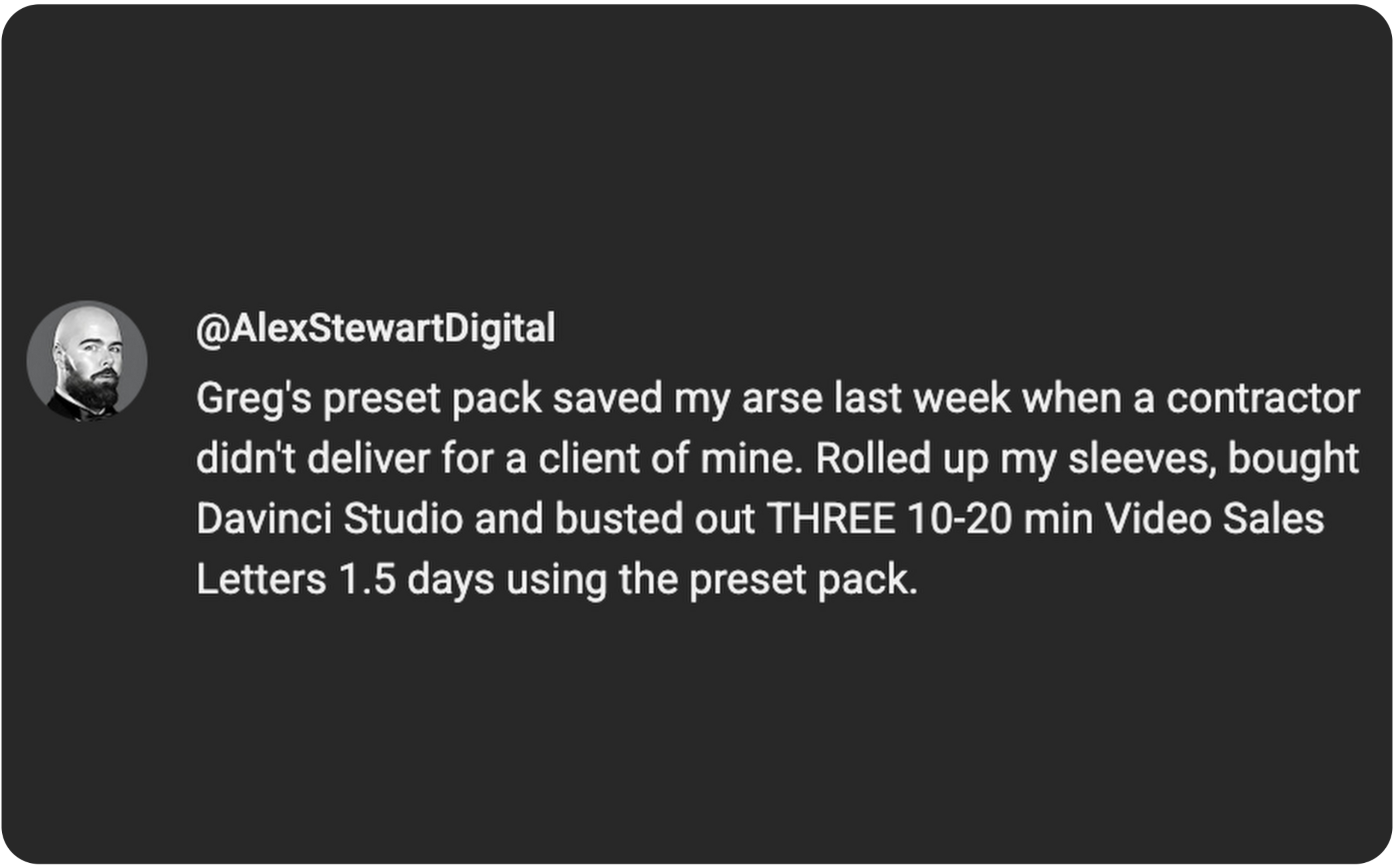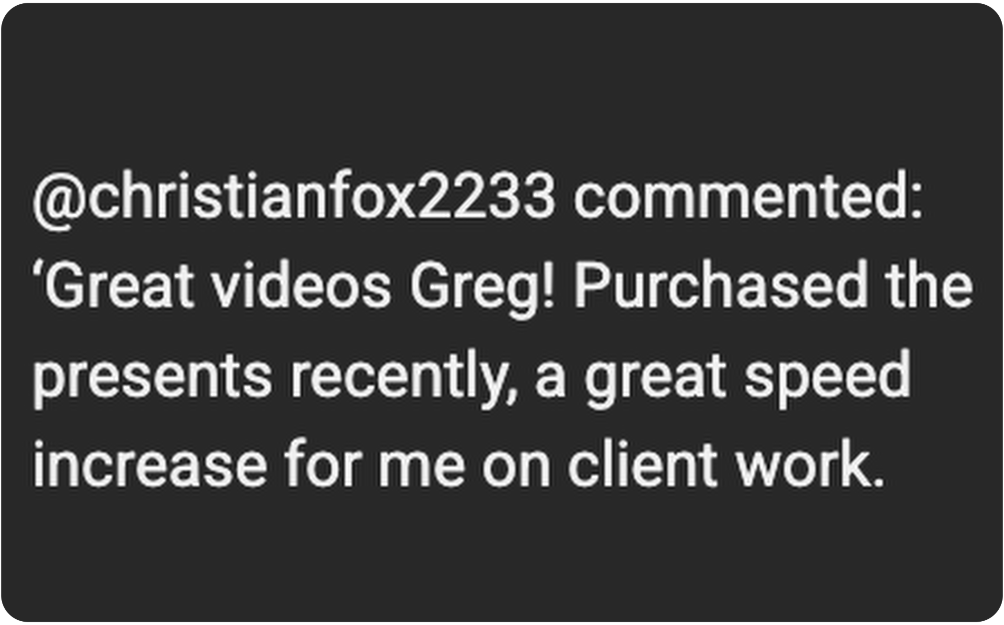 I use these presets on every single video I edit for my clients, they have transformed my editing speed and quality, saving me hours of time on every project. Tedius tasks can now be done within seconds, whilst also looking clean and professional.