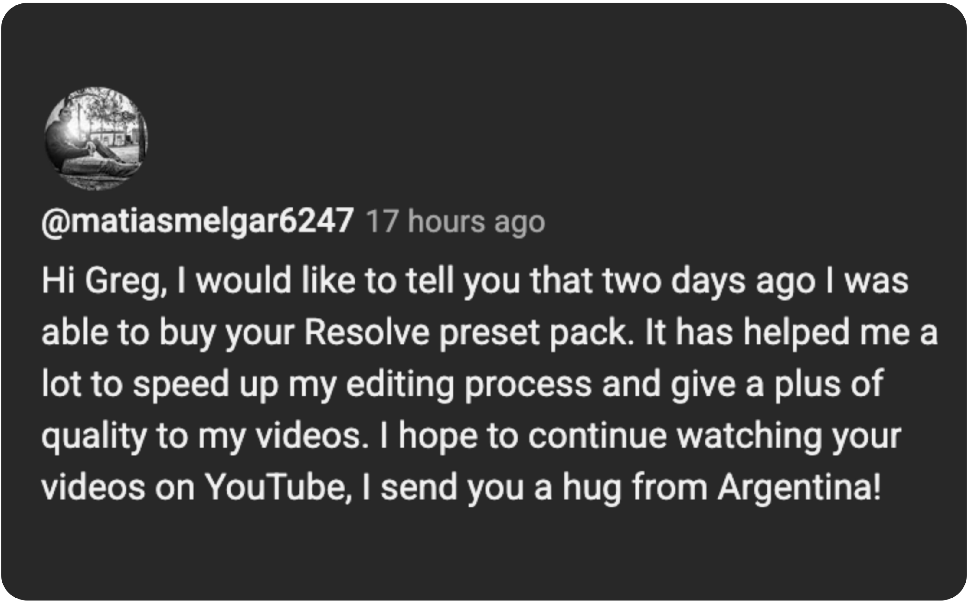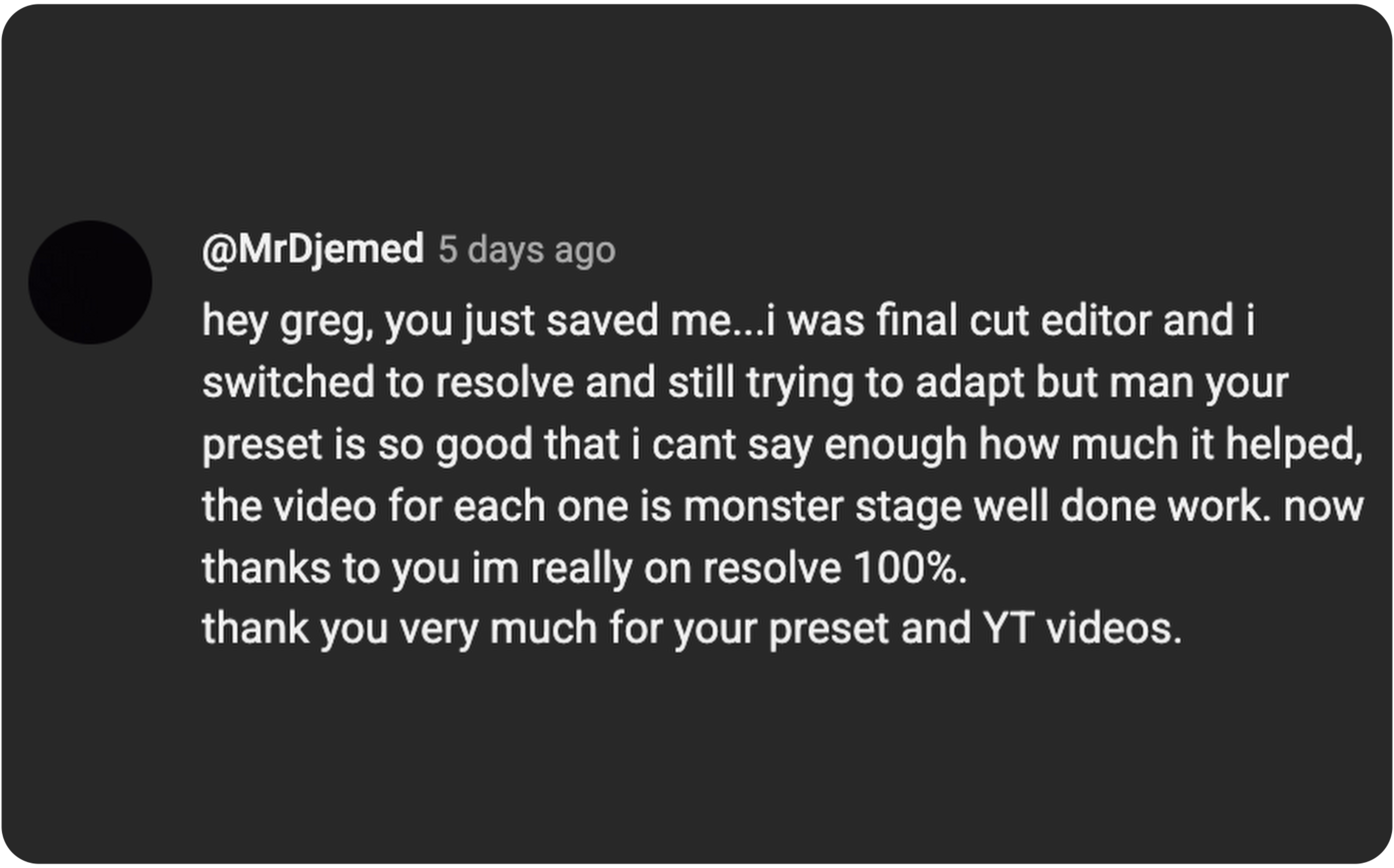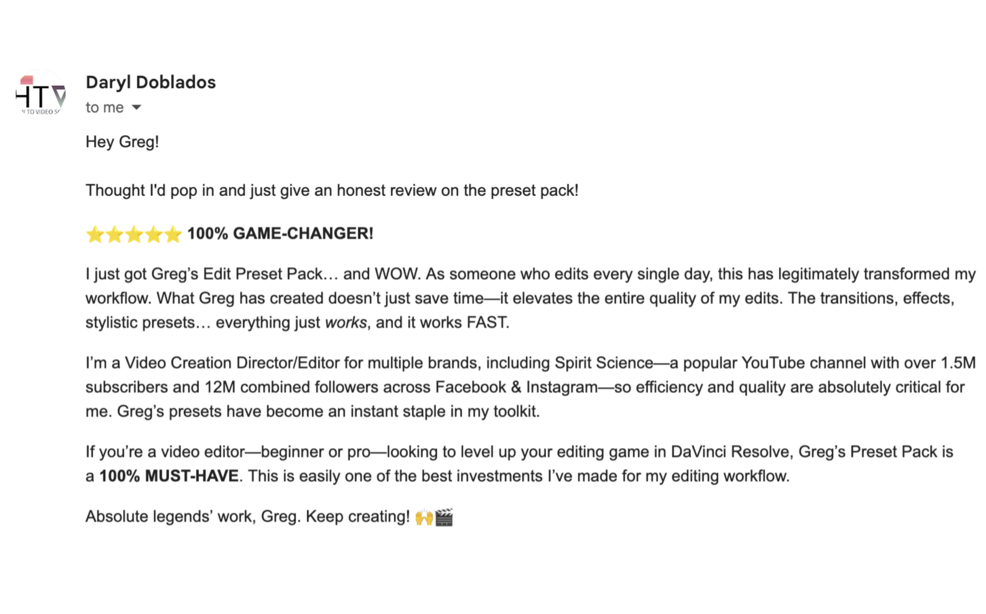 I use these presets on every single video I edit for my clients, they have transformed my editing speed and quality, saving me hours of time on every project. Tedius tasks can now be done within seconds, whilst also looking clean and professional.
