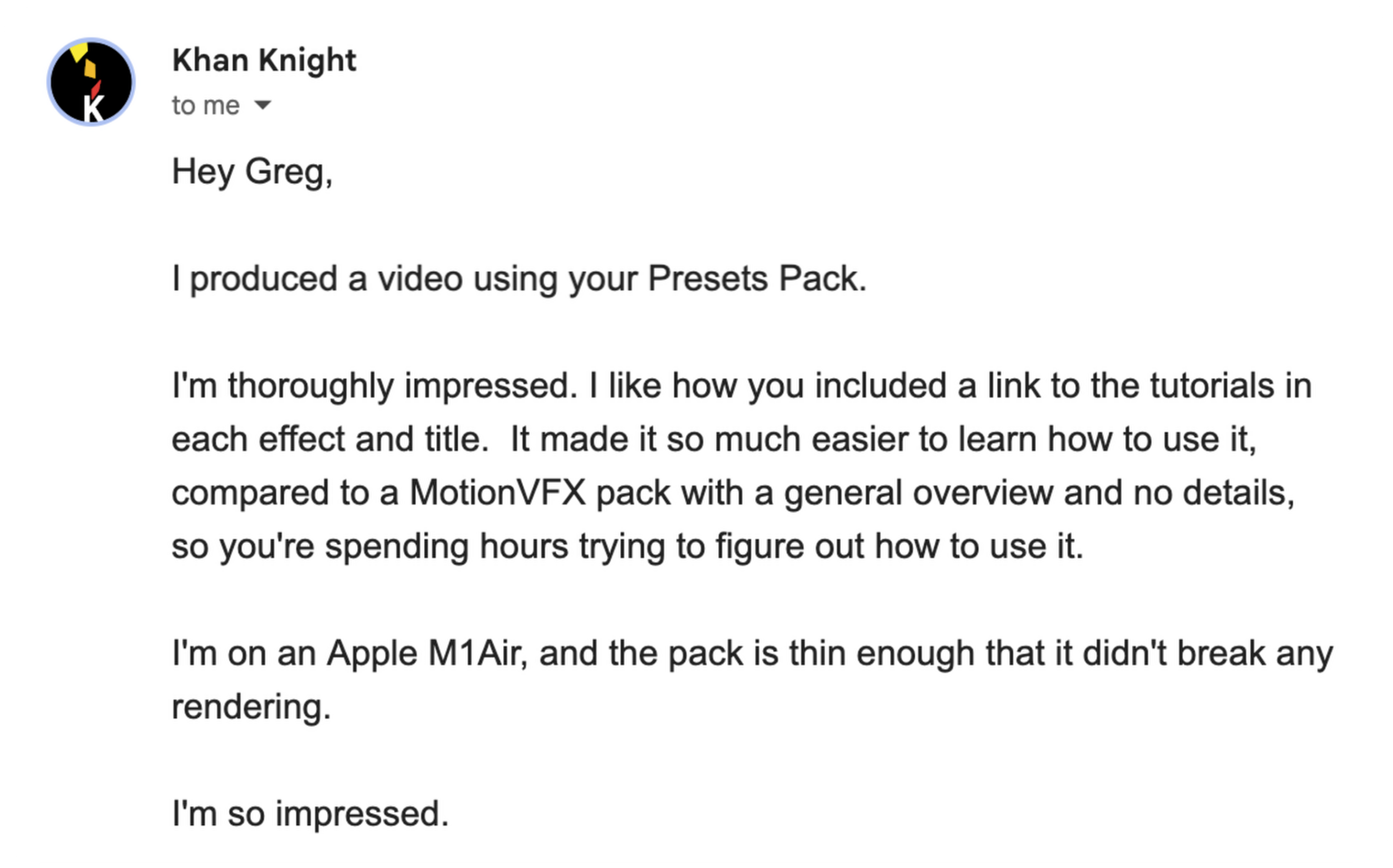 I used my presets throughout this video to animate images, add transitions, and add different effects, saving me hours in the process. This resulted in a professional looking video for a popular YouTube channel.