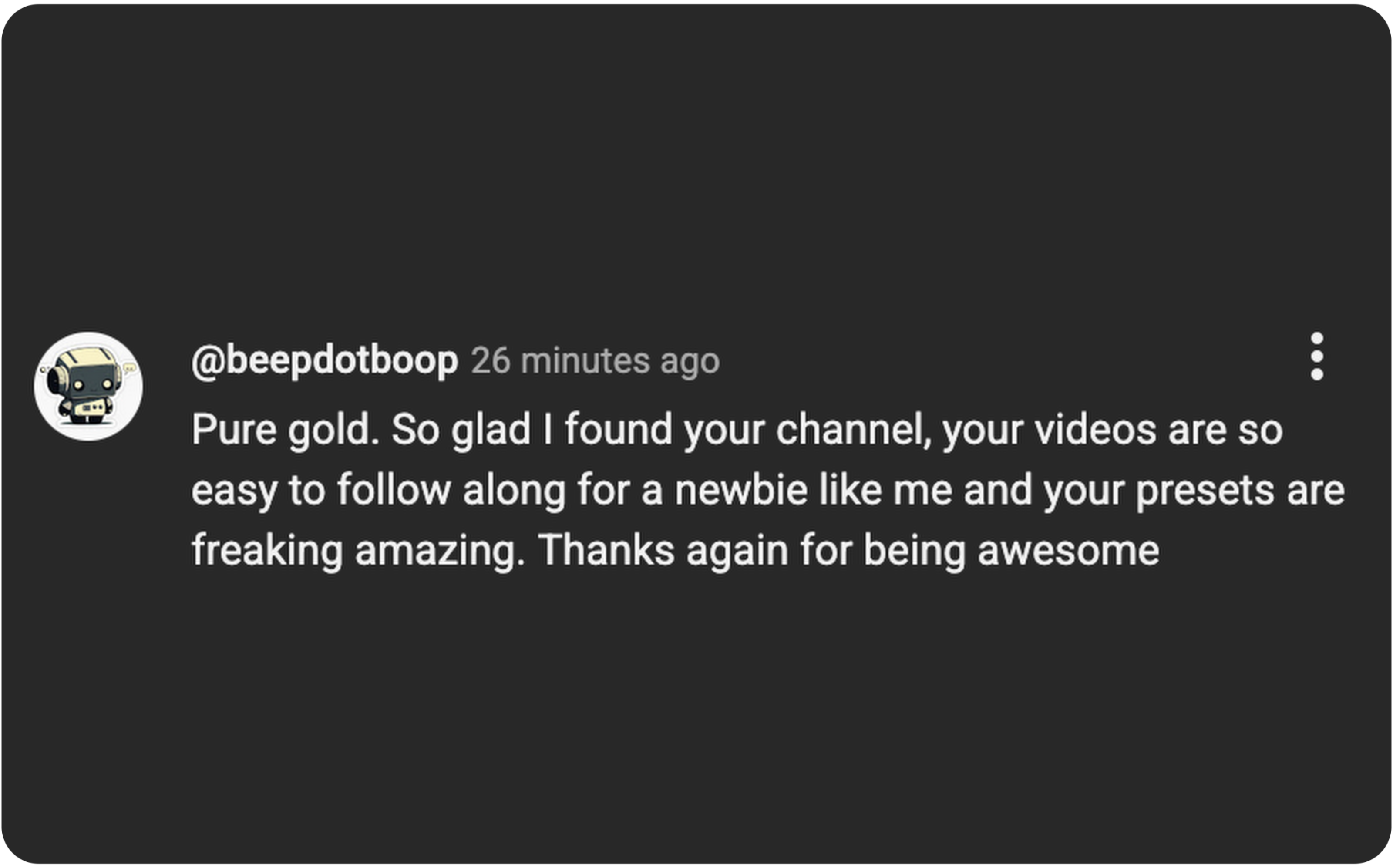 A PDF is included in the download which has links to in-depth tutorial videos for every single Preset, along with ways to set up your computer to get the most out of them.
